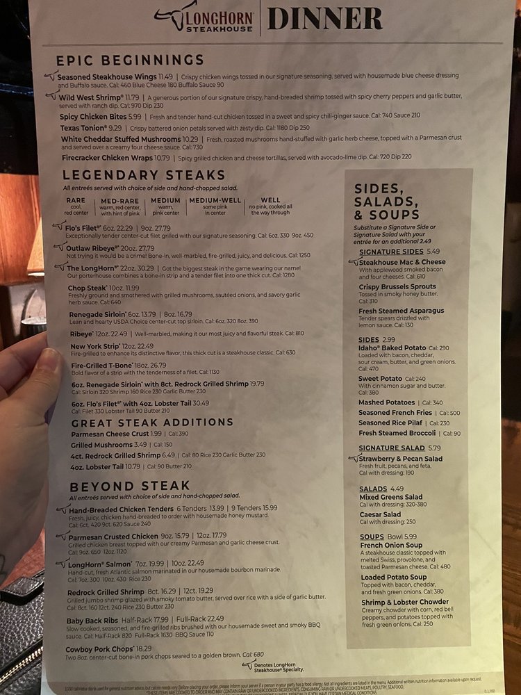 LongHorn Steakhouse Winter Garden Menu (Update 2025)